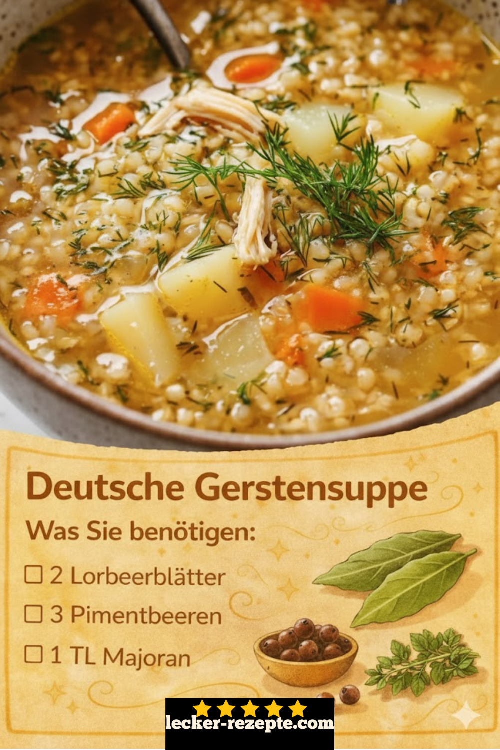 Für eine authentische Gerstensuppe benötigen Sie hochwertige, frische Zutaten. Hier ist eine klassische Zusammenstellung: