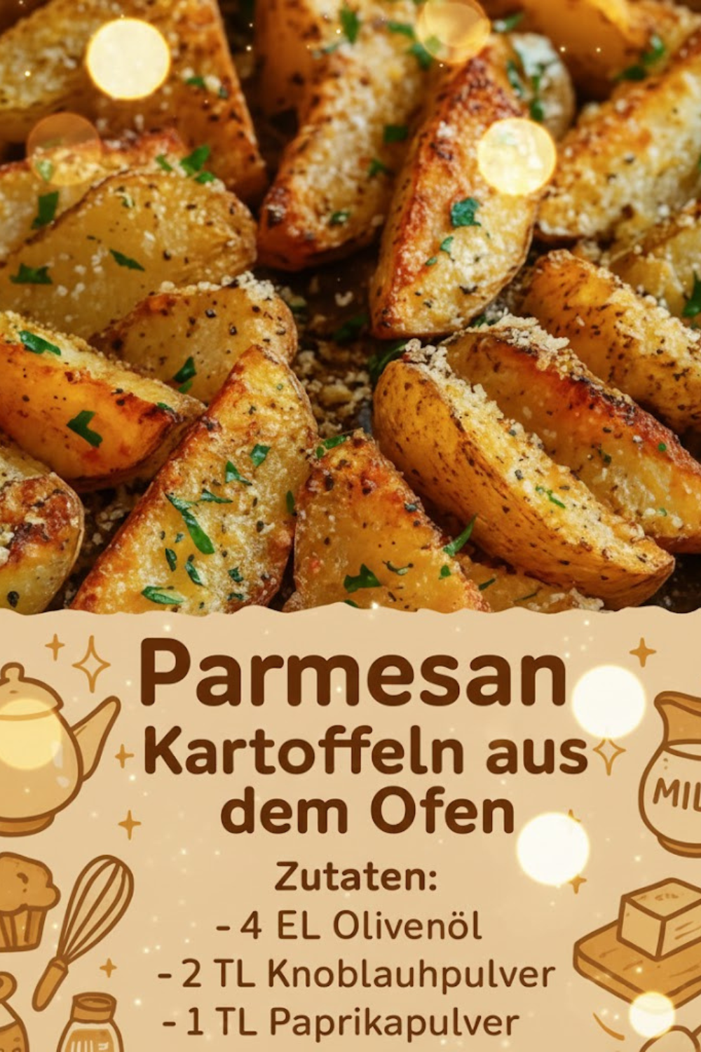 So entstehen Parmesan-Kartoffeln aus dem Ofen, knusprig, goldbraun & unwiderstehlich lecker, die innen weich und außen herrlich kross sind.