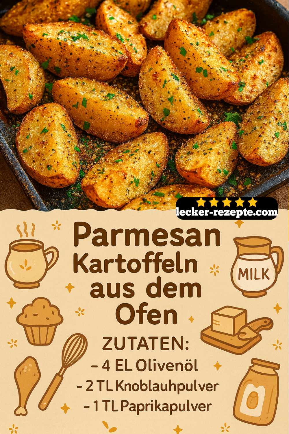Parmesan-Kartoffeln aus dem Ofen, knusprig, goldbraun & unwiderstehlich lecker, sind ein Gericht, das mit wenigen Zutaten auskommt und dennoch maximalen Geschmack bietet. Ob als Beilage oder Hauptgericht – sie sind vielseitig, aromatisch und lassen sich nach Belieben abwandeln.