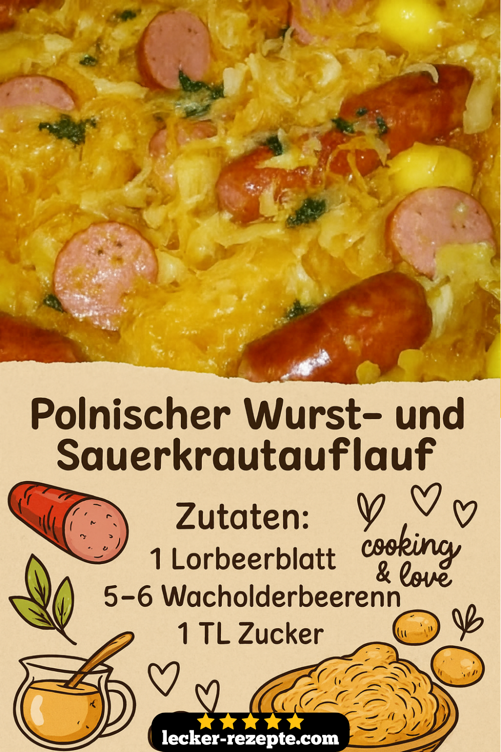 Der polnische Wurst-Sauerkraut-Auflauf, wunderbar aromatisch, ist ein Gericht voller Charakter – deftig, würzig und mit der typischen Frische des Sauerkrauts. Er vereint traditionelle polnische Küche mit beliebten Elementen der deutschsprachigen Esskultur und ist sowohl alltagstauglich als auch festlich. Ob klassisch mit Kartoffeln, cremig mit Sahne, pikant mit Kabanossi oder modern vegetarisch – dieser Auflauf lässt sich vielseitig anpassen und bleibt dabei immer ein herzlicher Genuss.