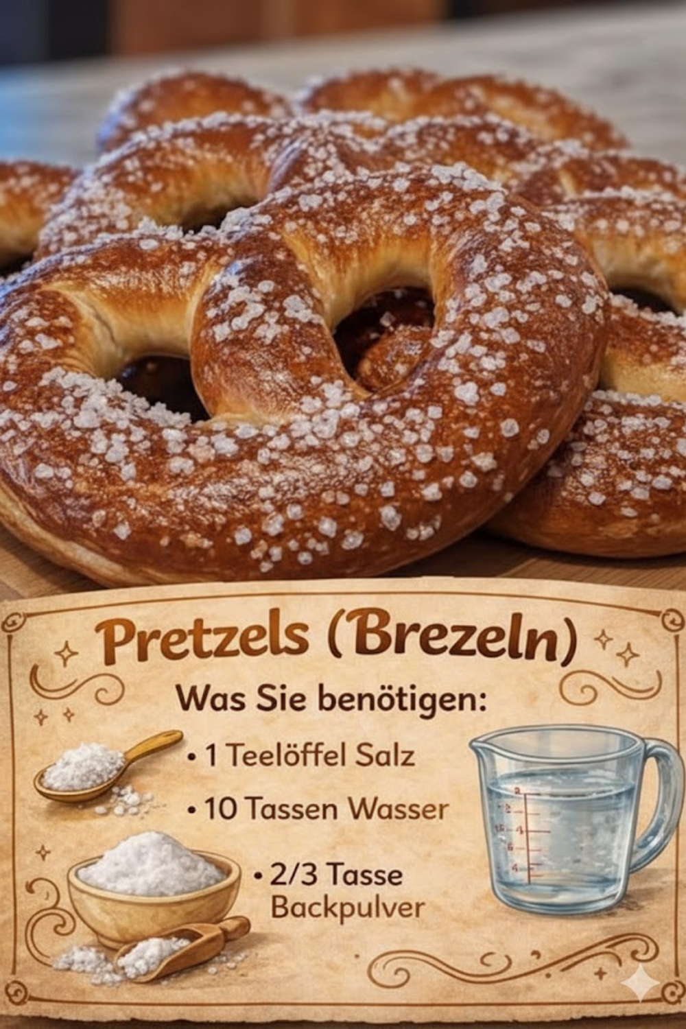 Das grobe Brezelsalz ist unverzichtbar. Es sorgt für den herzhaften Geschmack und verstärkt das Aroma des Gebäcks. Genau diese Salznote macht Pretzels (Brezeln), salzig und einfach unwiderstehlich.