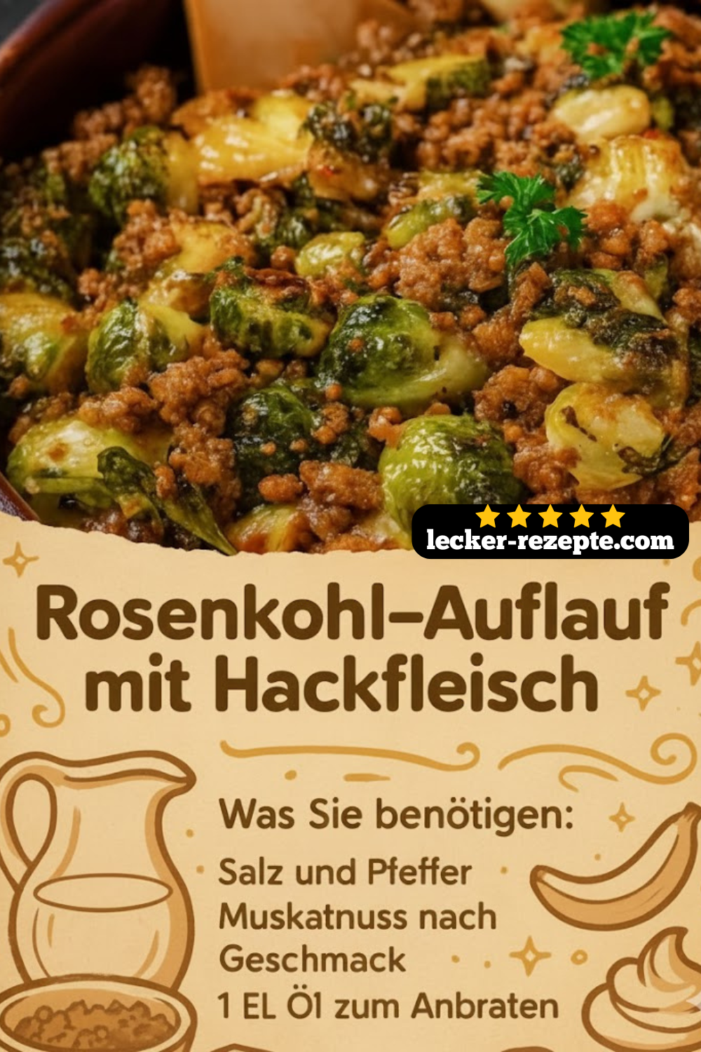 Wenn es draußen kälter wird und man sich nach einem richtig herzhaften Essen sehnt, gibt es kaum etwas Besseres als einen dampfenden Auflauf aus dem Ofen. Genau hier kommt unser Klassiker ins Spiel: „Rosenkohl-Hackfleisch-Auflauf ist deftig – einfach himmlisches Ofenglück“. Dieses Gericht verbindet den leicht nussigen Geschmack von Rosenkohl mit würzigem Hackfleisch und einer cremigen, goldbraunen Kruste. Es ist bodenständig, sättigend und zugleich überraschend vielseitig. Ob für die Familie, Gäste oder zum Vorkochen – dieser Auflauf ist ein echtes Wohlfühlessen für jede Gelegenheit.