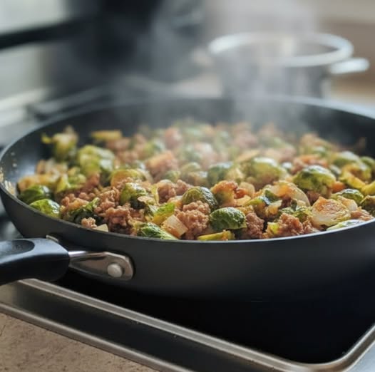 Die Kombination aus Gemüse und Hackfleisch ist ein Klassiker – aber besonders beim Rosenkohl entsteht eine wunderbare Balance: Das Hackfleisch bringt Herzhaftigkeit und Röstaromen, während der Rosenkohl Struktur und eine leichte Süße beisteuert. Die Pfanne wird dadurch sättigend, harmonisch und überraschend vielseitig.
