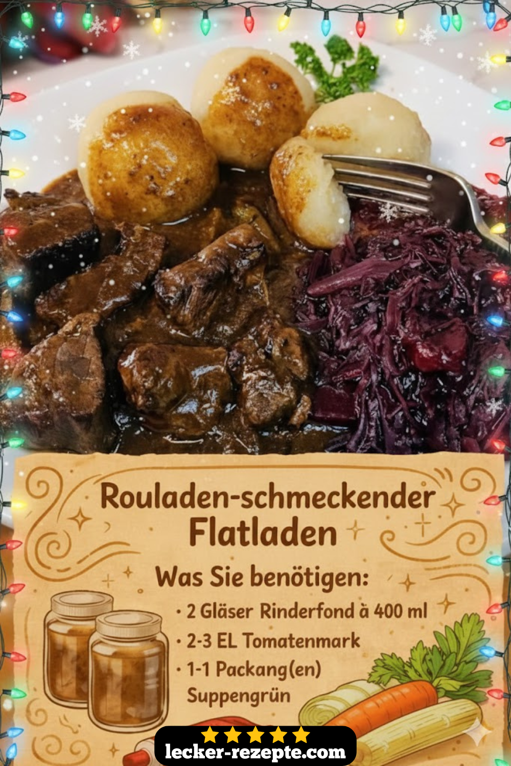 Tradition neu interpretiert: <Rouladen-schmeckende Flatladen ist der absolute Knaller> vereint den beliebten Rouladen-Geschmack mit moderner, schneller Küche. Ob klassisch, vegetarisch oder vegan – dieses Gericht ist wandelbar, alltagstauglich und ein echter Publikumsliebling in Deutschland, Österreich und der Schweiz. Wer deftige Hausmannskost liebt, aber wenig Zeit hat, findet hier die perfekte Lösung. Probieren lohnt sich – garantiert!