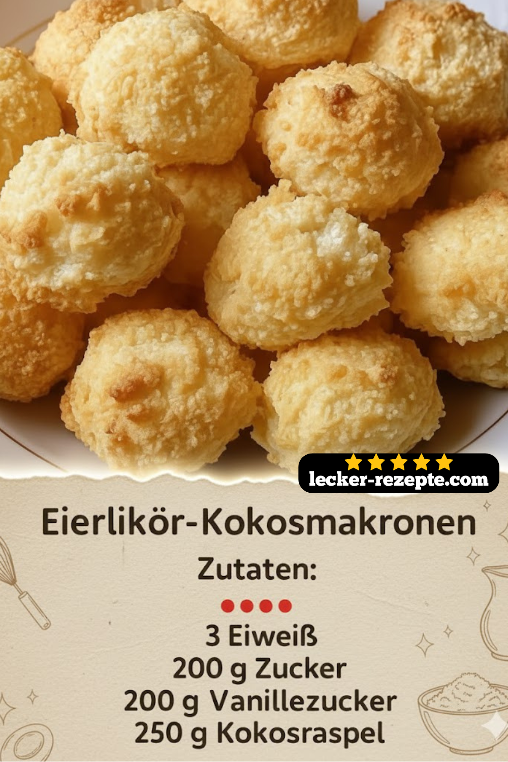 Saftige Kokosmakronen verfeinert mit Eierlikör kleine Köstlichkeiten zum Verlieben vereinen Tradition, Kreativität und Genuss. Die harmonische Kombination aus Kokos und cremiger Note sorgt für besondere Saftigkeit und aromatische Tiefe. Ob klassisch, kreativ variiert oder alkoholfrei interpretiert – diese Makronen begeistern durch Vielseitigkeit und Charme. Sie sind ein Beweis dafür, dass kleine Köstlichkeiten große Gefühle auslösen können und in der Genusskultur der DACH-Region einen festen Platz haben.