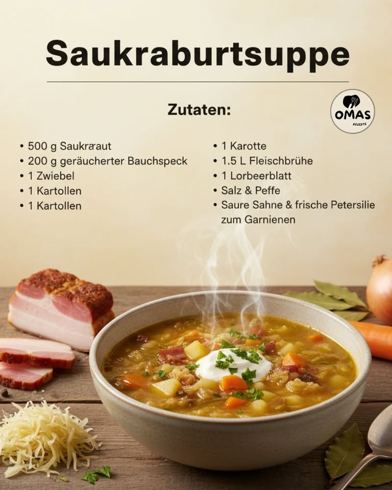 Sauerkrautsuppe – perfekt für kalte Tage und ideal, wenn du etwas Deftiges, Einfaches und Superleckeres suchst 😍🥣
