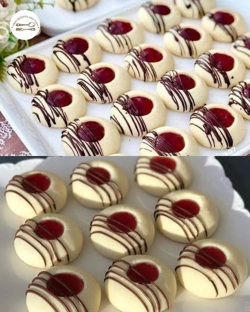Diese zarten Butterplätzchen mit fruchtiger Füllung und Schokostreifen sind ein Hit auf jedem Kuchenteller – ein echtes Oma-Rezept!