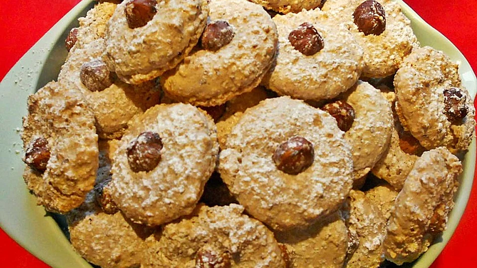 Das Grundrezept kommt mit Eiweiß, Zucker und gemahlenen Nüssen aus – simpel und dennoch genial. Abgerundet werden die kleinen Makronen oft mit einer Oblate oder einer ganzen Nuss als Topping.