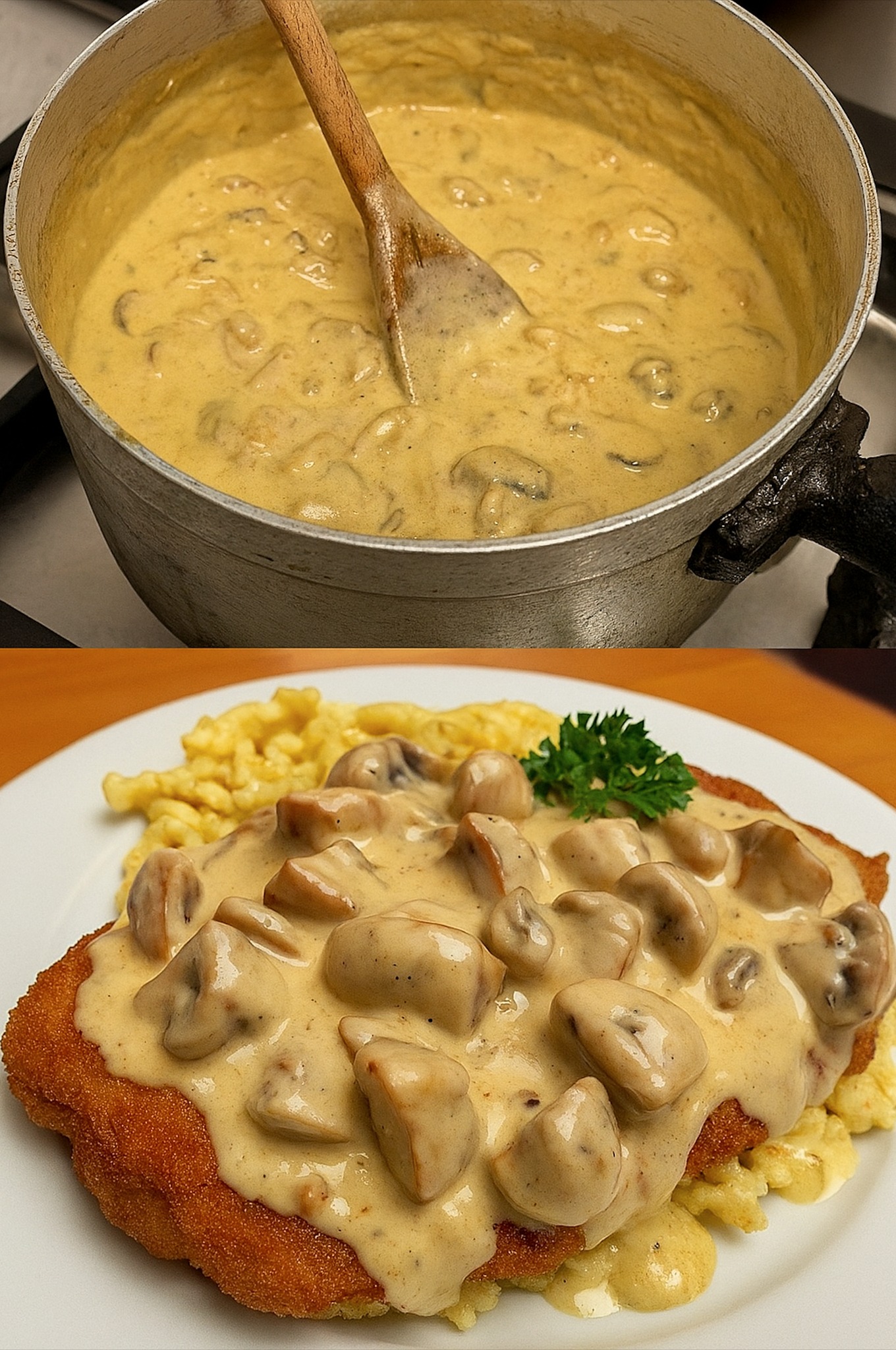 Die Schwarzwälder Jägersauce mit 250 g Champignons, herzhaft, kann nach Belieben variiert werden: