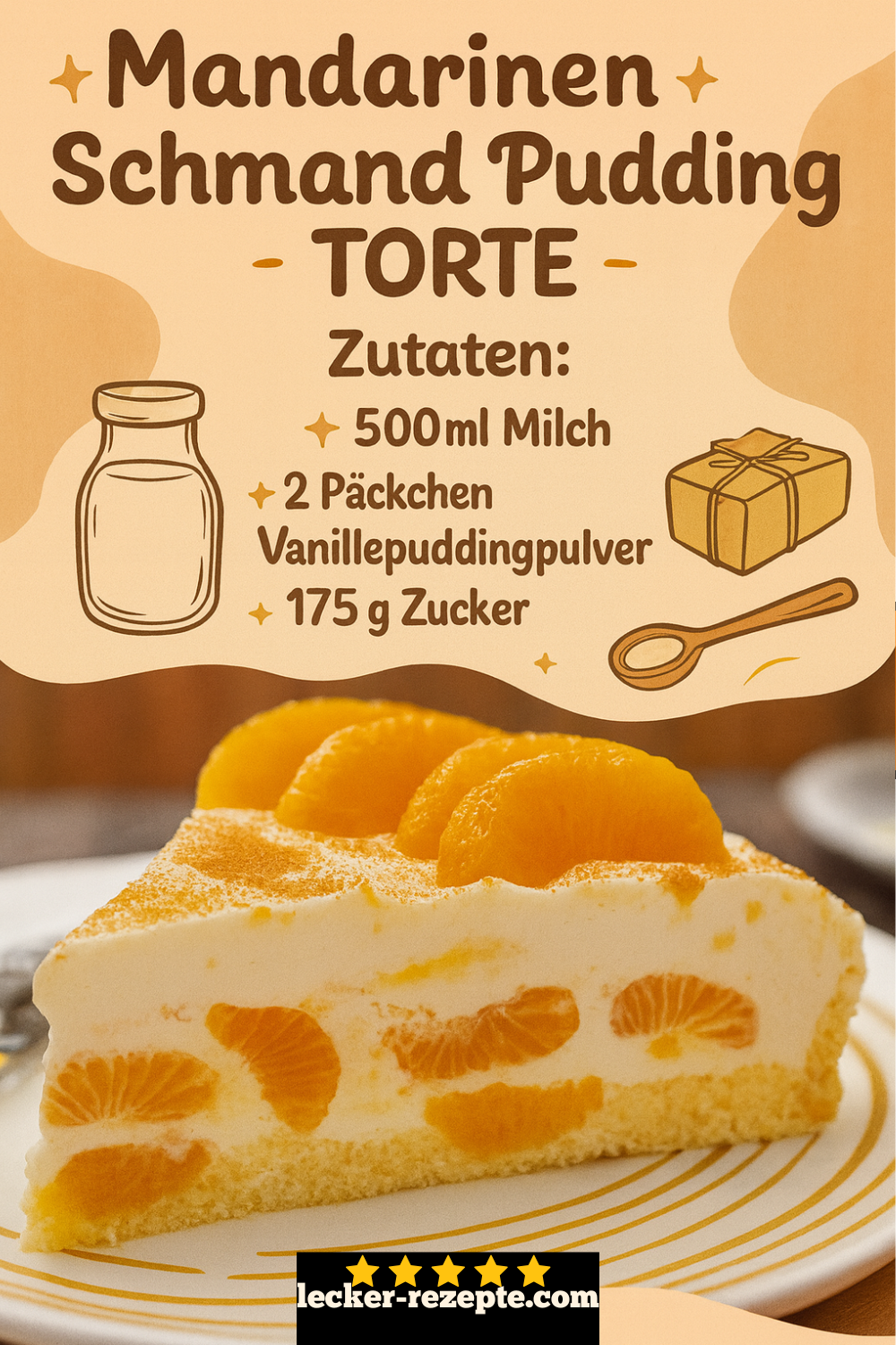 Diese Torte ist zwar cremig und süß, aber nicht übermäßig schwer. Durch die frischen Mandarinen wirkt sie leichter als viele Sahnetorten. Wer Laktose nicht verträgt, kann auf lactosefreie Produkte ausweichen. Auch vegane Alternativen sind möglich – etwa mit pflanzlichem Vanillepudding, veganem Schmandersatz und einem Keksboden ohne Butter.