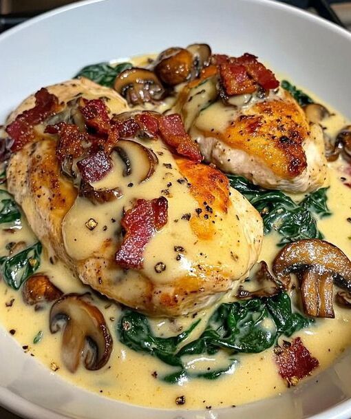 Cremiges Hähnchen mit Pilzen und Spinat – etwas für Genießer