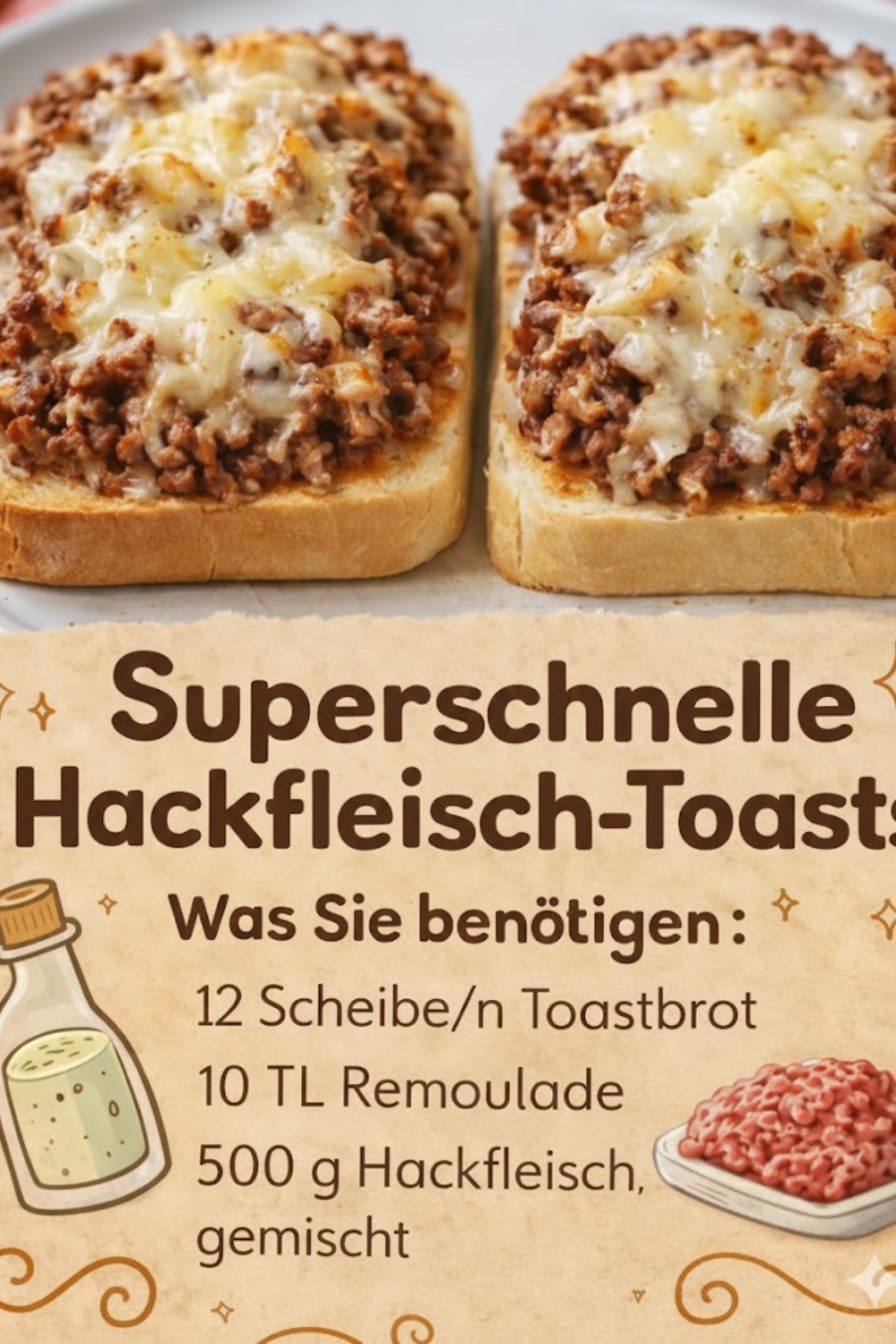 Wer kennt es nicht: Nach einem langen Arbeitstag möchte man etwas Schnelles, Einfaches und zugleich unglaublich Leckeres zubereiten. Genau hier kommen die superschnellen Hackfleisch-Toasts, in wenigen Minuten fertig und einfach unfassbar lecker ins Spiel. Dieses Gericht vereint herzhaften Geschmack, einfache Zubereitung und einen hohen Sättigungsfaktor – perfekt für Familien, Berufstätige oder Studenten.