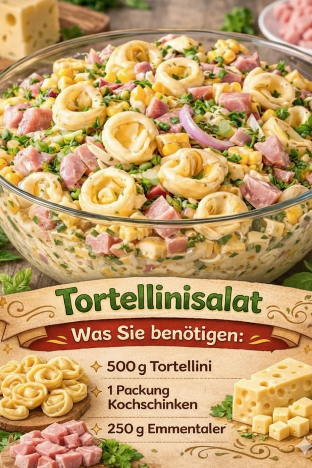 Diese Version steht sinnbildlich für Tortellinisalat, herzhaft und immer der Star auf jedem Buffet, weil sie kräftig gewürzt ist, satt macht und besonders bei Fleischliebhabern hervorragend ankommt.