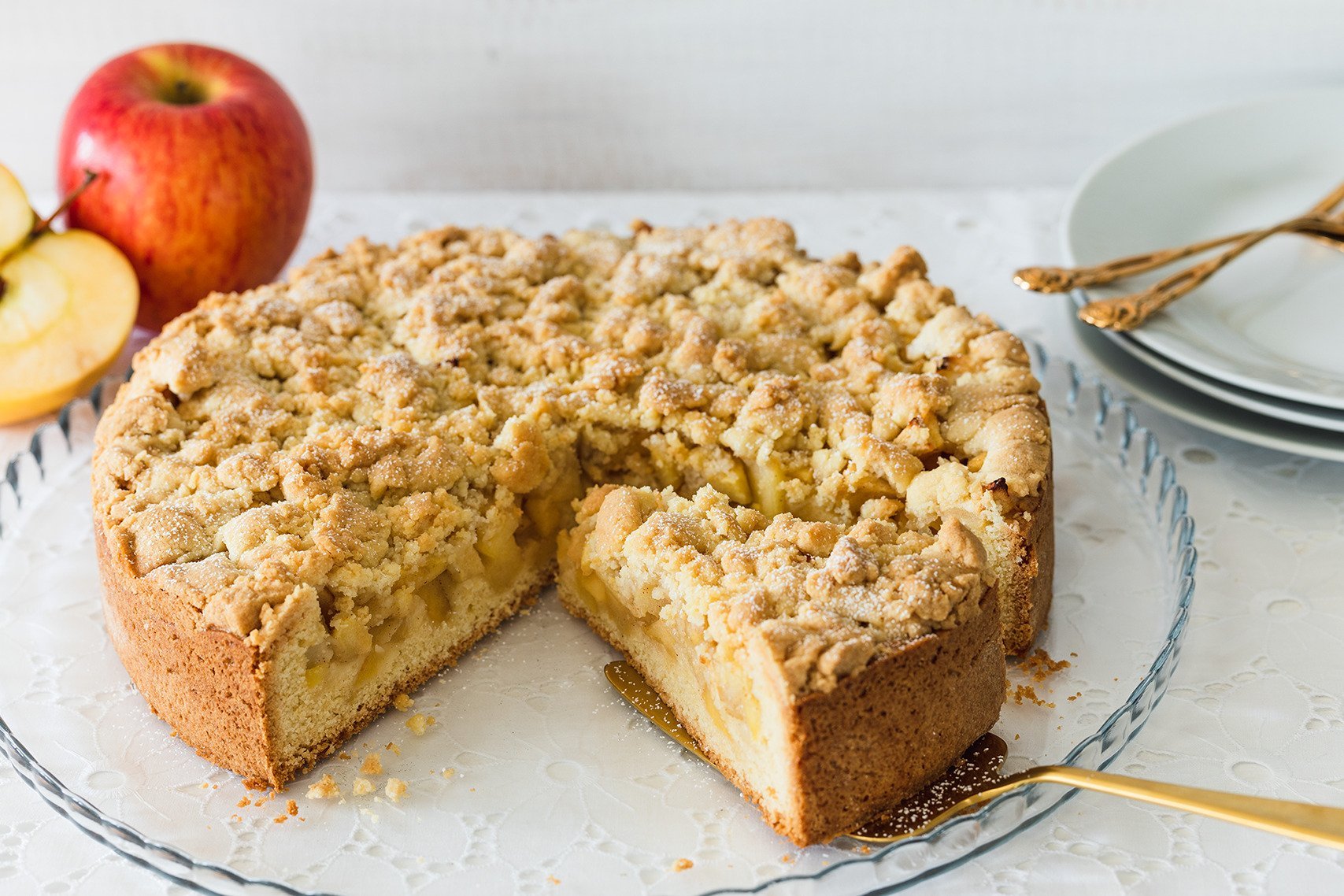 Ein echter Favorit! Streusel aus Butter, Mehl und Zucker machen jeden Apfelkuchen unwiderstehlich.