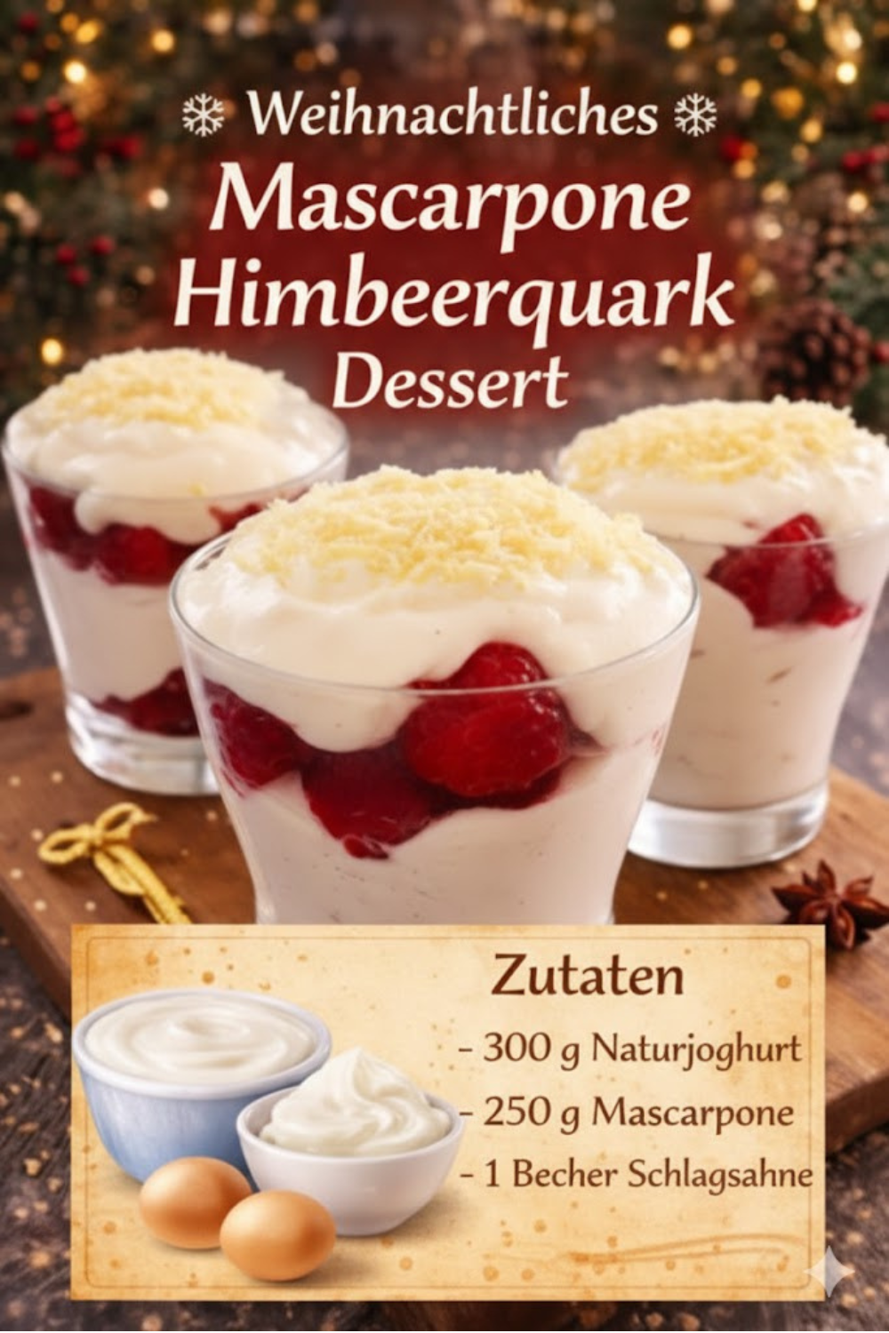Zutaten für das perfekte Weihnachtliche Mascarpone Himbeerquark Dessert