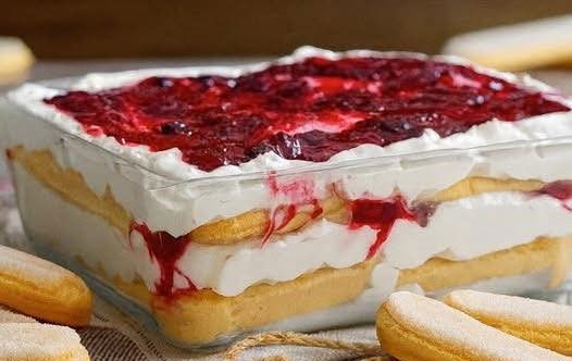Alles cremig verrühren und kaltstellen, bis das Dessert geschichtet wird.