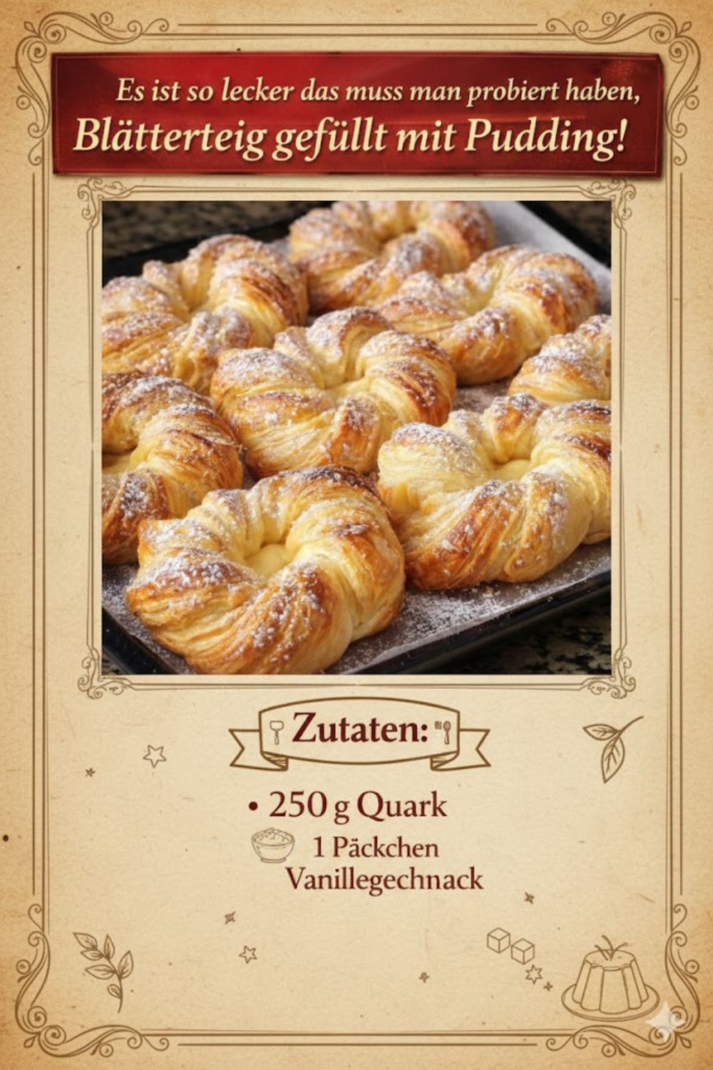 <Wooow das macht suchtig, Blätterteig gefullt mit Pudding> ist mehr als nur ein Trend – es ist ein zeitloses Gebäck, das Generationen verbindet. Einfach in der Zubereitung, wandelbar im Geschmack und garantiert ein Publikumsliebling. Ob klassisch mit Vanille, fruchtig, schokoladig oder vegan: Dieses Rezept passt sich deinem Alltag an und sorgt immer für Begeisterung.