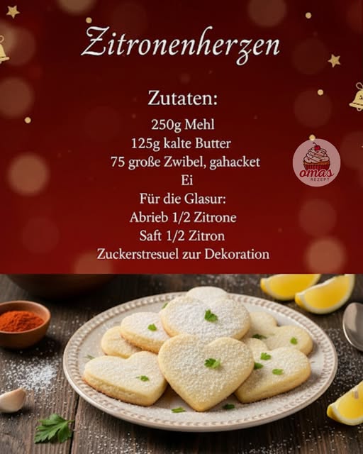 Glasur: Puderzucker mit Zitronensaft verrühren, die noch leicht warmen Herzen damit bestreichen und trocknen lassen.