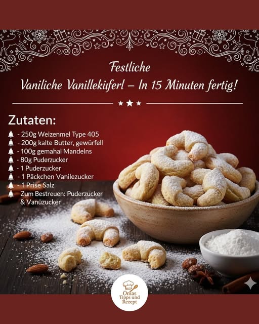 Im vorgeheizten Ofen ca. 10-12 Minuten backen, bis die Ränder leicht goldbraun sind. Die Kipferl sollten nicht zu dunkel werden.